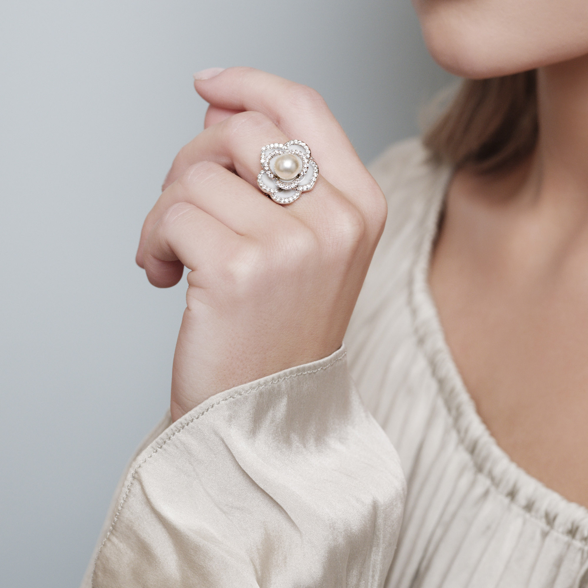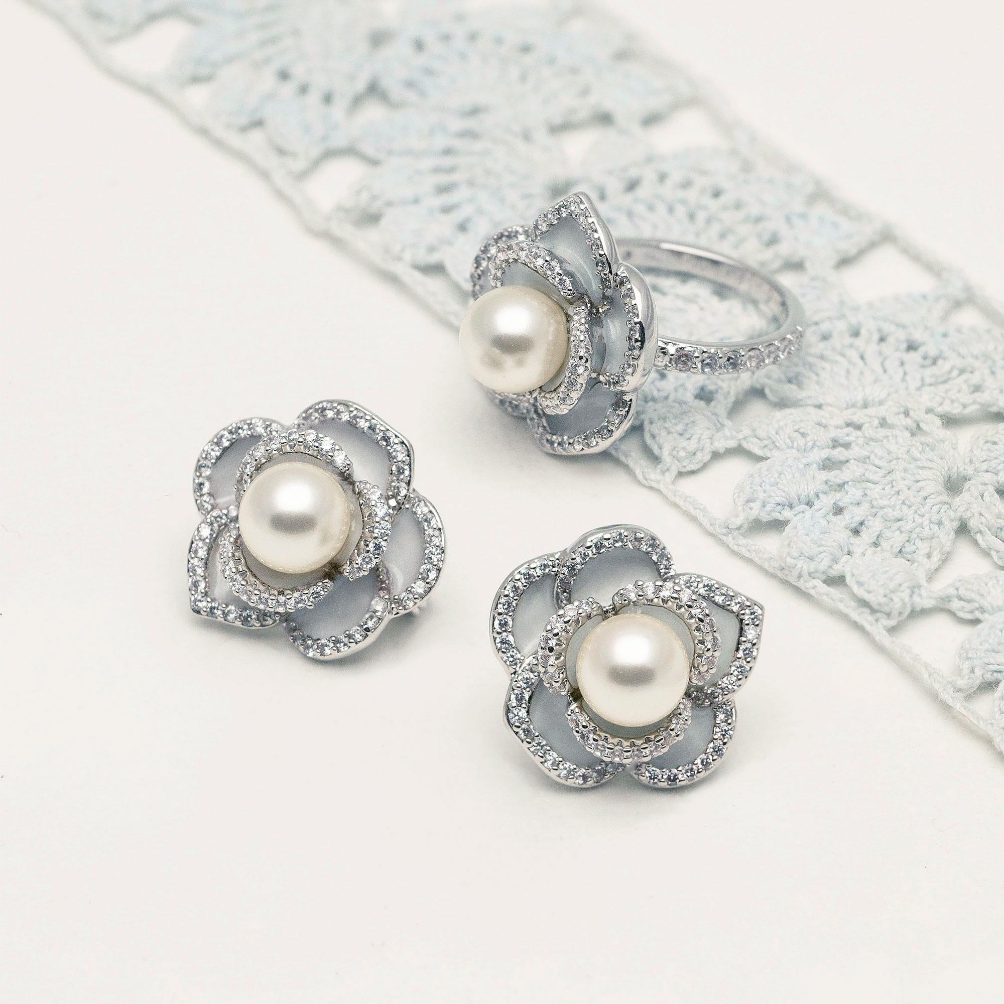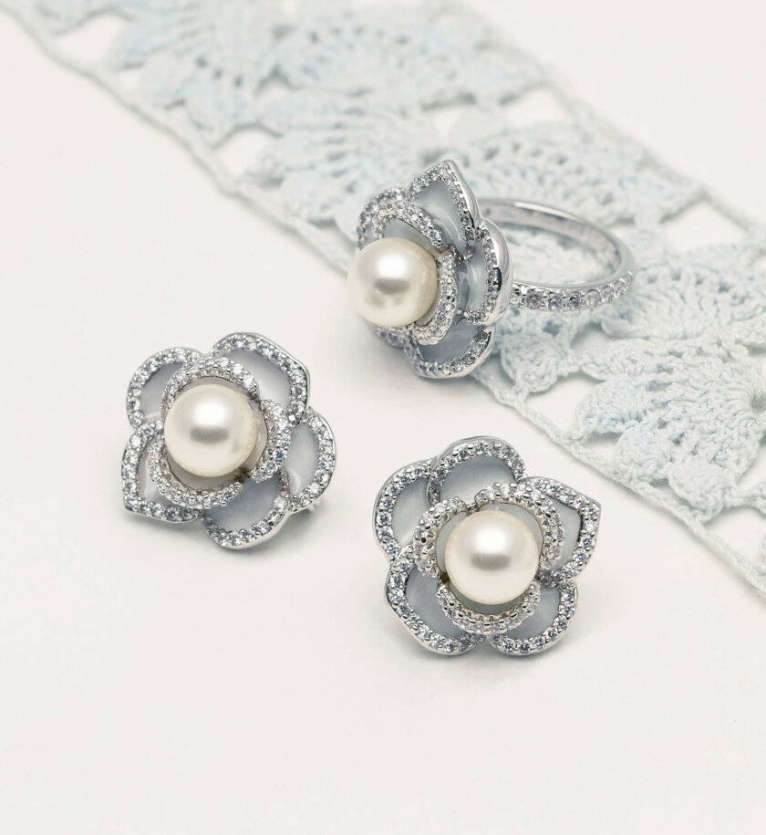 Our Coco rose ring showcase a striking rose design in silver and light blue. A perfect accessory for those who love timeless beauty with a modern twist.