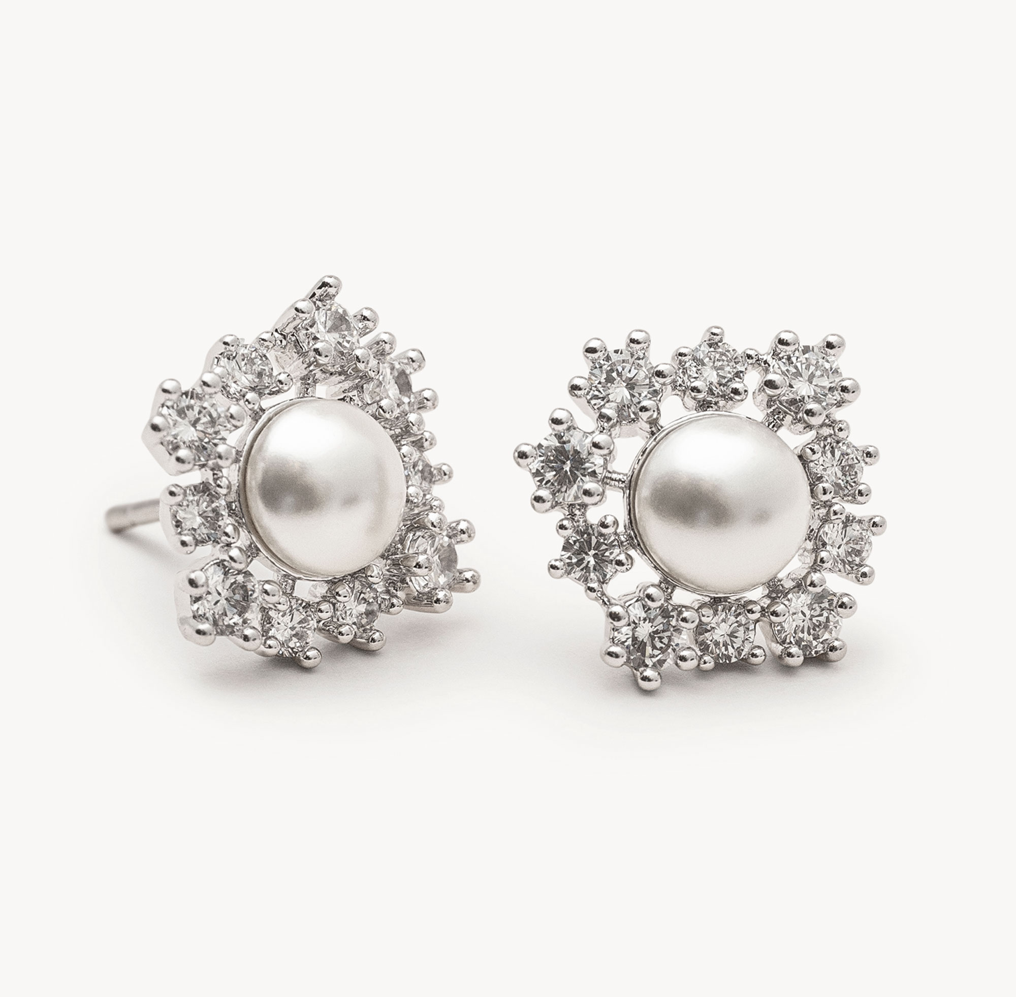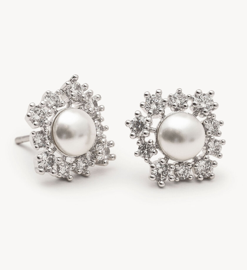 Glowing with light, our Emily earrings take a stunning ivory pearl and create a gorgeous assemblage using smaller clear silver crystals. Set in silver with pushback closure. Complete your look with other items from our Emily collection.